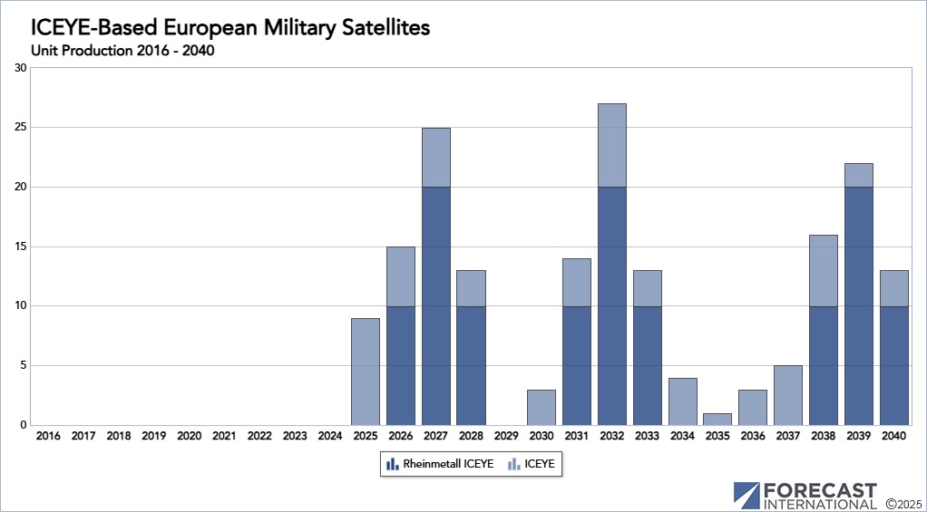 Germany: Perhaps the most ambitious ICEYE-related project was the formation of the Rheinmetall ICEYE joint venture. This joint venture will produce the SPOCK-1 (SAR-Spacesystem for Persistent Operational traCKing Stufe 1) constellation with 40 satellites planned. Full deployment of the system will likely be in the 2027/28 timeframe. With Stufe 1 in the name (Level 1), it is highly likely there will be follow-on "Stufen" in the future.